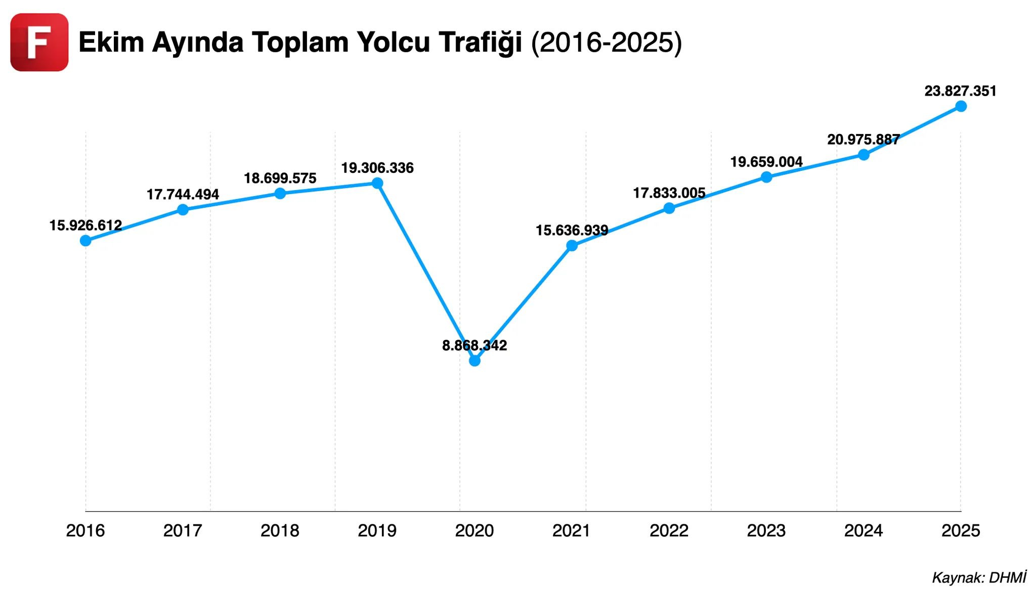 7️⃣ Kültür ve Turizm Bakanlığı verilerine göre Türkiye’ye gelen yabancı ziyaretçi sayısı ekim ayında yıllık bazda yüzde 4,32 artarak 5 milyon 683 bin 717 kişiye ulaştı. En çok ziyaretçi gönderen ülkelerde Almanya ve Rusya ilk iki sıradaki yerini korurken, Birleşik Krallık üçüncü sırada yer aldı. Almanya’dan gelen ziyaretçiler yüzde 6,20, Rusya’dan gelenler ise yüzde 11,44 arttı. Yılın ilk on ayında toplam ziyaretçi sayısı 55,7 milyona, yabancı ziyaretçi sayısı ise 47,3 milyona ulaşırken, gelenlerin yüzde 96’sından fazlasının kültür, gezi ve tatil amaçlı tercih yaptığı görüldü. Bu hafta havacılık bültenimizi yayınladık. Havacılık sektörü ile ilgili gelişmeleri aylık yayınladığımız bültenlerle takip edebilirsiniz.