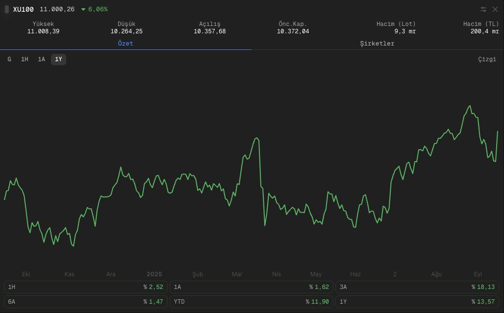 Erteleme kararının ardından Borsa İstanbul’da alımlar hızlandı. Borsa İstanbul %6,06 yükselirken, 2023 mayıs ayından bu yana performans anlamında en iyi gününü geçirdi. BIST-100’de yalnızca bir şirket negatif performans gösterdi. XBANK %6,06 yükselirken, XHOLD %6,49 yükseldi. Endekste yılın en yüksek üçüncü hacim gününü geride bıraktık. Diğer iki gün çok sert kapanışlar aldığımız 20 Mart (İmamoğlu’nun gözaltına alınması) ve 2 Eylül (İstanbul İl Kongresi’nin iptali) günleri oldu.