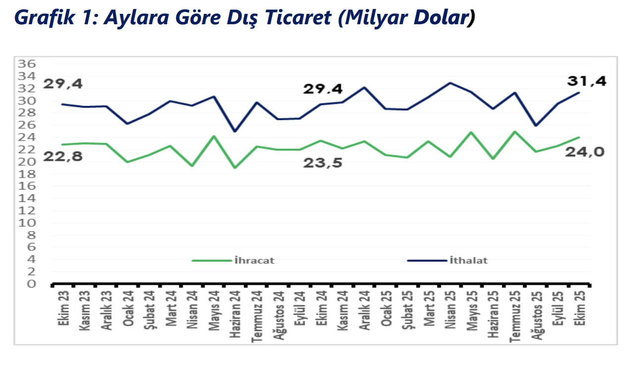 ☑ Ekim ayında enerji ve altın ithalatındaki artışın etkisiyle dış ticaret açığı yeniden genişlerken, ihracatta toparlanma sinyalleri görülse de genel artış hızı zayıf kaldı.
