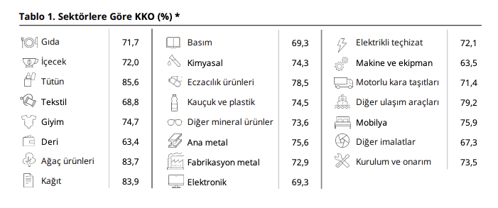 Kapasite kullanımında ise sınırlı da olsa artış görüldü. Mevsimsellikten arındırılmış KKO yüzde 73,8’e, arındırılmamış oran ise yüzde 74’e yükseldi. Sektörel kırılımda tütün, kâğıt, ağaç ürünleri ve eczacılık yüzde 80’e yaklaşan oranlarla öne çıkarken, deri ve makine tarafında düşük seviyeler göze çarptı. Otomotiv ve kimya sektörleri 70’ler civarında seyrederken, mobilya ve ana metalde görece güçlü bir tablo vardı. Genel görünümde kapasite kullanımı yatay–hafif yukarı yönlü seyrederken, reel kesimin geleceğe dair beklentilerinde zayıflık sürüyor.