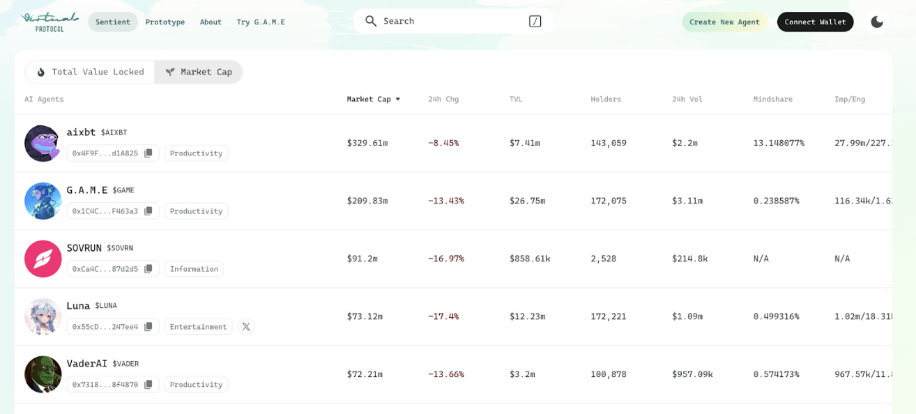 - 2024 yılı boyunca Virtuals Protokolü’nde 500’den fazla AI ajanı yaratıldı. Bu ajanlar, oyunlardan sosyal medyaya, eğitimden sanata kadar birçok sektörde aktif olarak kullanıldı.