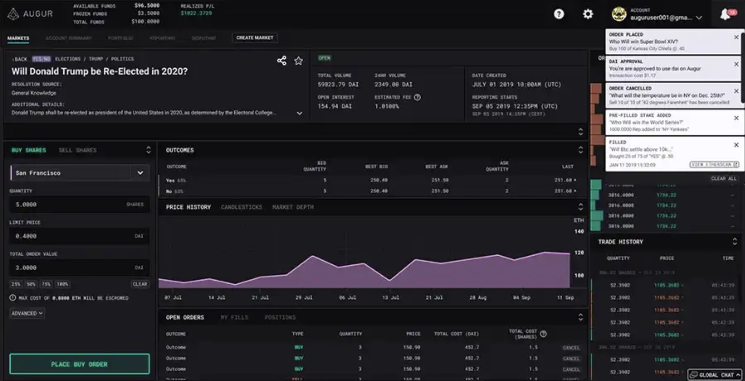 Bu fikirle yola çıkan ilk projelerden biri Augur oldu. 2018 yılında Ethereum üzerinde başlatılan Augur, merkeziyetsiz bir tahmin piyasası oluşturmayı hedefliyordu. Teoride Augur, herkesin herhangi bir konu hakkında tahmin piyasaları oluşturmasına ve bu piyasalarda işlem yapmasına olanak sağlıyordu. Ancak, pratikte işler beklenildiği gibi gitmedi.