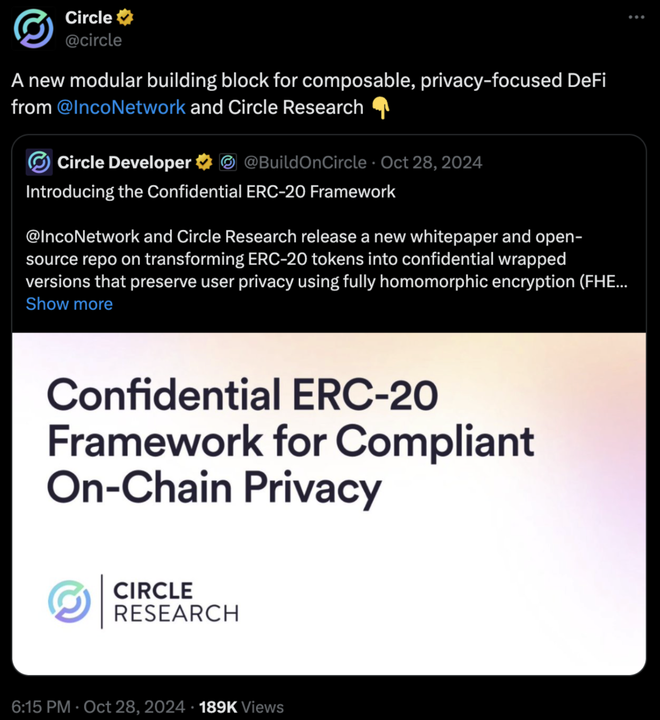 Inco’nun en dikkat çekici adımlarından biri, Circle ile birlikte geliştirdiği Confidential ERC-20 standardı oldu.
