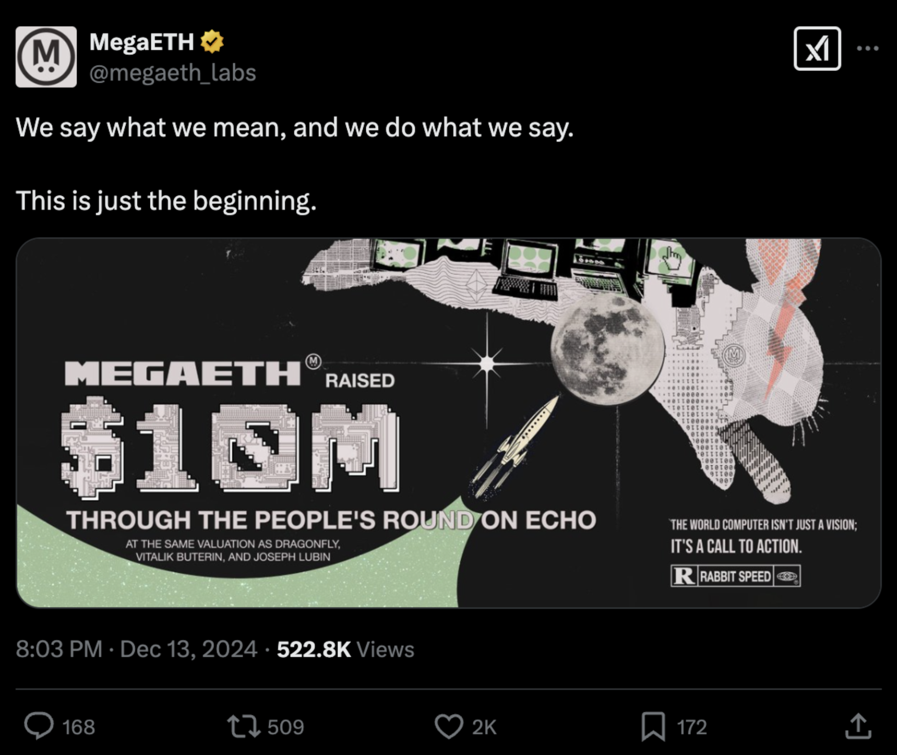 - Global Token Exchange (GTE): MegaETH altyapısını kullanan ve “dünyanın en hızlı merkeziyetsiz borsası” olmayı hedefleyen GTE, toplamda 10 milyon dolar yatırım alırken, bunun 2.5 milyon dolarlık kısmı Echo üzerinden toplandı.