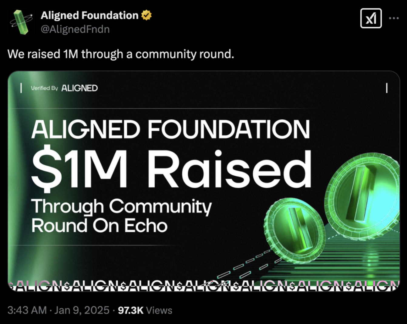 - Aligned Layer: Son dönemde ZK alanında adını en çok duyduğumuz projelerden biri olan Aligned, topluluk desteğiyle 1 milyon dolar yatırım aldı.