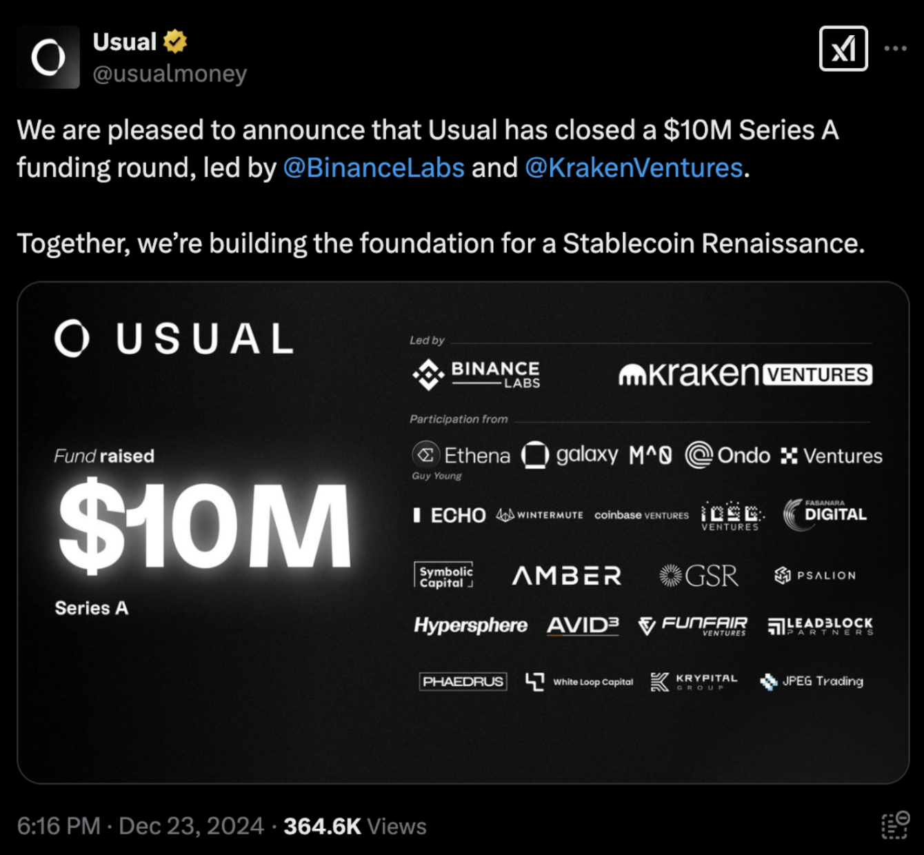 - Usual: Stablecoin piyasasında farklı bir yaklaşım sunan Usual, yalnızca getiri sağlayan bir varlık olmanın ötesine geçerek kullanıcılarını protokolün gerçek sahipleri haline getirdi ve bu yüzden topluluk tarafından dikkat çekti. Bu süreç de Usual’ın Echo da dahil olmak üzere 10 milyon dolar fon topladı.